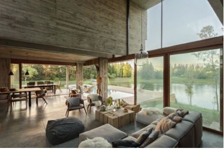 En definitiva, el hogar se configura en una idea muy moderna, canchera y funcional de combinar el hormigón con la madera y principalmente con todo el entorno natural que lo rodea, a partir de su ubicación a la vera del lago de ese barrio privado.
