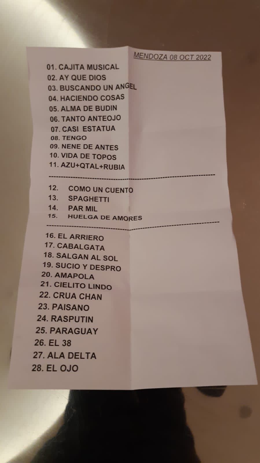 Aunque se extrañaron algunos hitos como “Qué ves” o “Sábado”, las 28 piezas que el grupo interpretó fueron suficientes para ganarse la ovación de su gente durante todo el evento. “La aplanadora del rock and roll, es Divididos …” cantó el público y el grupo respondió con un arsenal cargado que incineró el escenario y dejó más que satisfechos a sus seguidores en otra noche de rock mendocina.