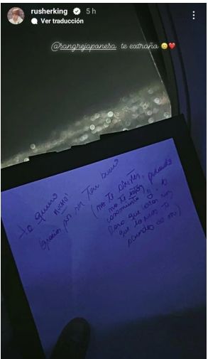 El cantante se derritió con esa mensaje que Suárez le redactó en un trozo de papel y decidió que sería conveniente mostrarlo en su perfil oficial de Instagram. Con una foto en la que se ve su mano sosteniendo la nota romántica, con la noche de fondo.