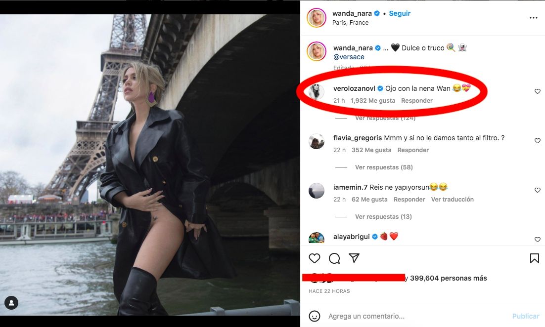 Claro que los comentarios no tardaron en llegar por miles. Y fue el de Verónica Lozano el que generó muchísimas reacciones por el tenor de su mensaje. "Ojo con la nena Wan", escribió la conductora junto a un emoji de risas y un corazón a lo que inmediatamente Nara respondió: "jajaj te amo" junto a otro corazón.