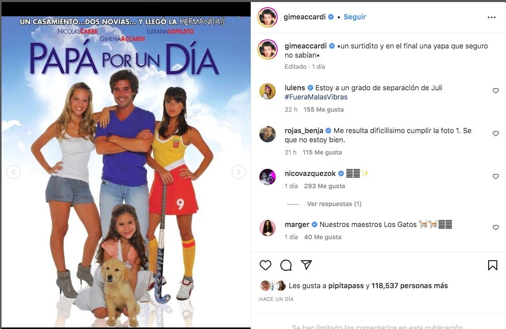 En un posteo de Gimena, con el que recorrió un popurrí de recuerdos, anticipó en la publicación que los seguidores se toparían con un registro llamativo al escribir: “Un surtidito y en el final una yapa que seguro no sabían”. En clara referencia a Julieta.