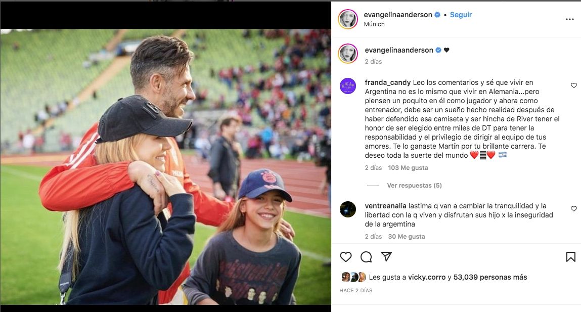 Por eso en una imagen de hace dos días, en la que luce Anderson abrazando a Martín en su despedida al frente del segundo equipo del Bayern Munich, una seguidora le escribió: ““No hay como vivir en Argentina, te lo digo por experiencia propia. Volver es lo más después de estar tanto tiempo afuera, los chicos se adaptan rápido”.