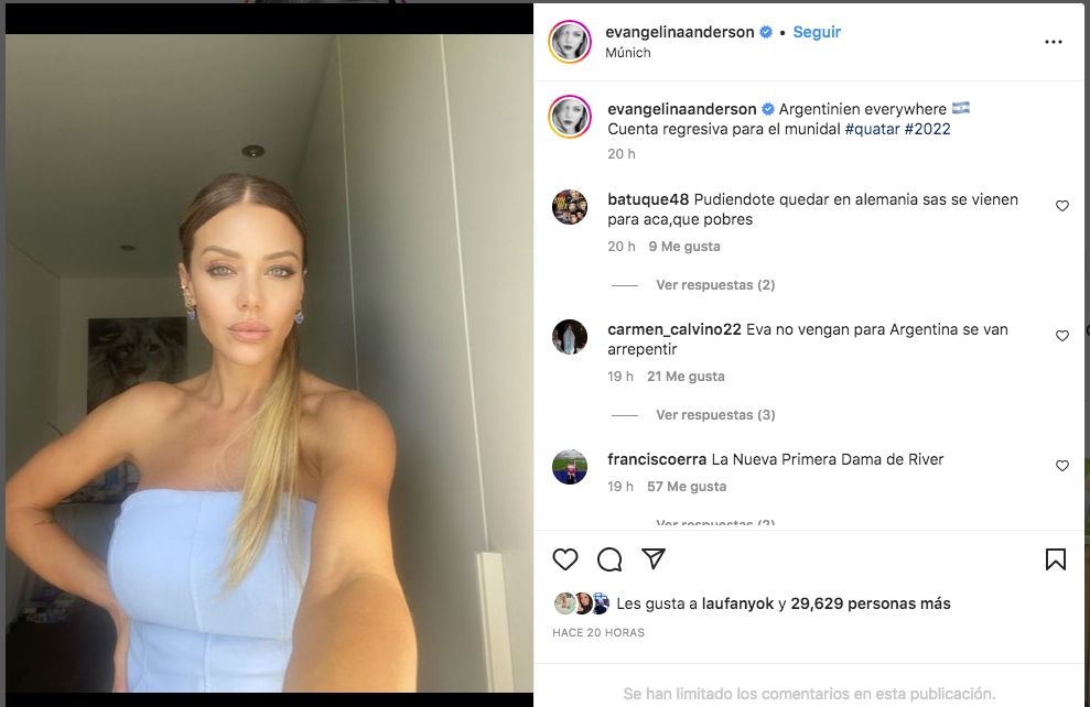 Evangelina Anderson vive horas de mucha exaltación, de sensaciones muy fuertes, de las que modifican para siempre el semblante y que refieren a un cambio profundo en la cotidianidad. La blonda se alista para dejar atrás una decena de años en Alemania, para retornar a Argentina.
