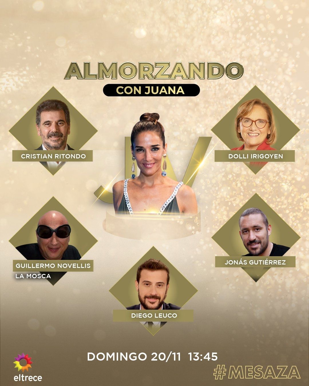 Por su parte, para el mediodía del domingo llegará la otra propuesta de El Trece, a través del ciclo de 'Almorzando con Juana', con el liderazgo de Juana Viale. Será otra de las fuertes atracciones del fin de semana del canal, desde las 13:45 horas del domingo 20 de noviembre.