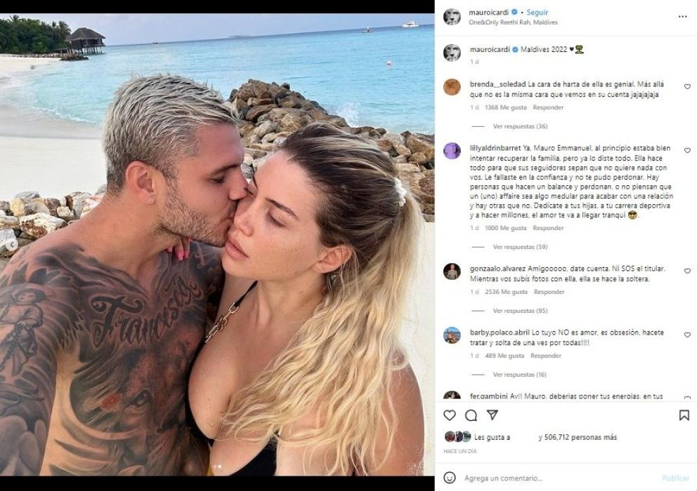 “La cara de harta de ella es genial”, “Amigooooo, date cuenta. Ni SOS el titular. Mientras vos subís fotos con ella, ella se hace la soltera”, “Ya, Mauro Emmanuel, al principio estaba bien intentar recuperar la familia, pero ya lo diste todo. Ella hace todo para que sus seguidores sepan que no quiere nada con vos”,“¡¡La expresión corporal no miente!! Una te puede estar diciendo que está todo bien, pero su cara de bronca la delata... ¡no te perdonó!”, fueron algunos comentarios que dejaron los seguidores de Mauro Icardi por los interminables idas y vueltas con Wanda Nara.