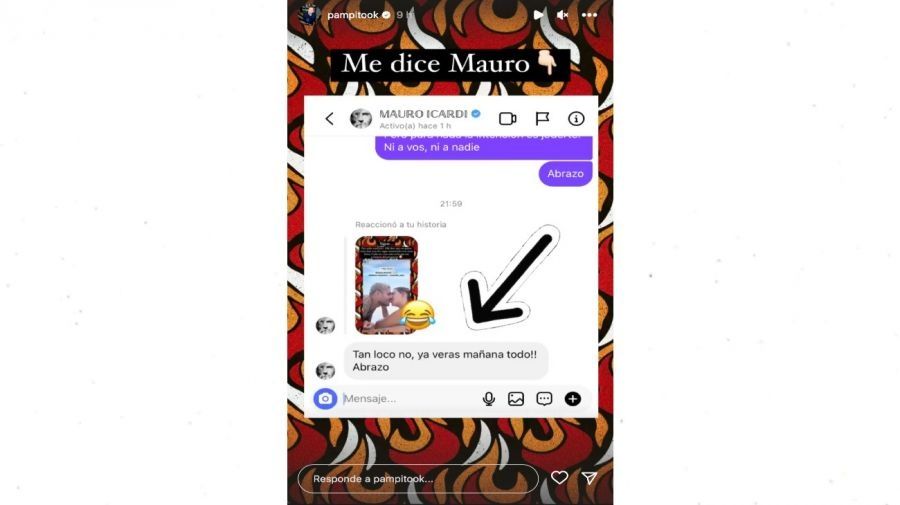 Además, ante los irónicos comentarios del periodista Sebastián "Pampito" Perelló Aciar, Icardi deslizó una advertencia sobre la situació que estaría transitando con Nara. "Sigue... Este pibe está loco. Ella dice que no estar más con él y sigue insistiendo con estas fotos. Cada vez creo más lo que contaron del pasaporte", expresó el mencionado periodista desde sus redes.