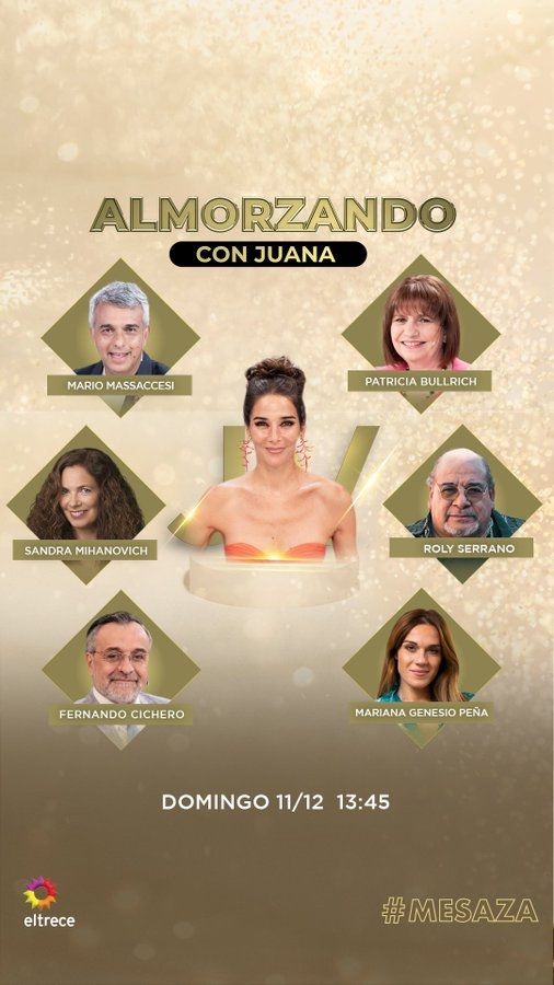 Por su parte, y ya para la jornada del domingo durante el mediodía, el otro plato fuerte de Eltrece para este fin de semana será la presencia de la siempre elegante Juana Viale, a través de un ciclo que se ha vuelto otro clásico: 'Almorzando con Juana'.