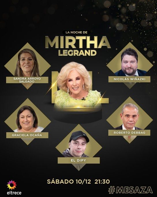 Con el objetivo de ponerse adelante en la batalla de hoy por la noche, todos los cañones apuntarán a los invitados que tendrá 'La noche de Mirtha', conducido por la leyenda Mirtha Legrand. Desde las 21:30 horas de este sábado 10 de diciembre, la diva tendrá una "mesaza" que promete mucho.
