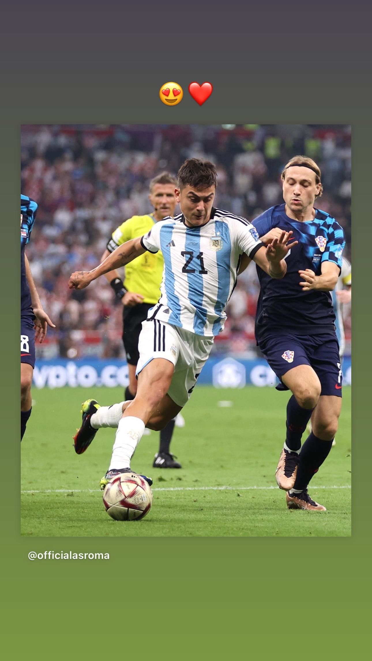 Además, la cantante sumó otro posteo con una imagen de Paulo Dybala en plena acción en el encuentro entre Argentina y Croacia. En esta ocasión, la artista sumó unos corazones al posteo.