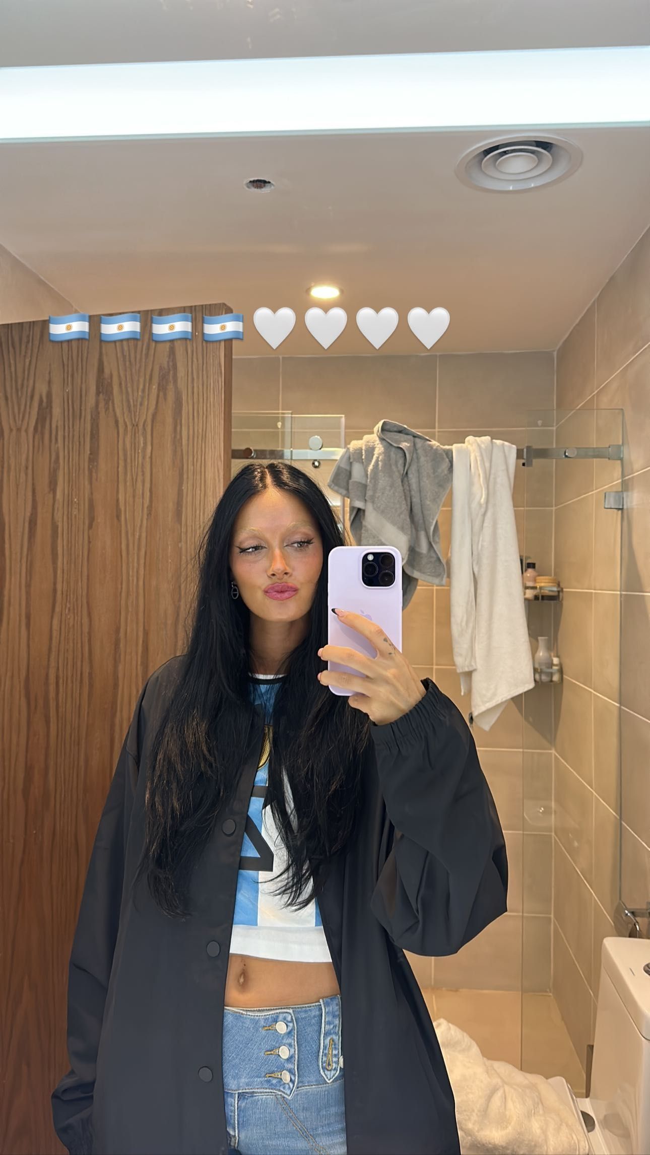 Poco más tarde, Oriana Sabatini compartió una imagen del look con el que fue al estadio Lusail, luciendo una camiseta de la Selección, que suele ser un outfit de rigor para alentar al equipo.