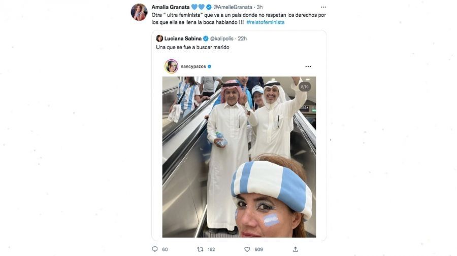 "¡Otra 'ultra feminista' que va a un país donde no respetan los derechos por los que ella se llena la boca hablando! #relatofeminista", disparó por ejemplo Amalia Granata desde su cuenta de Tiwter.