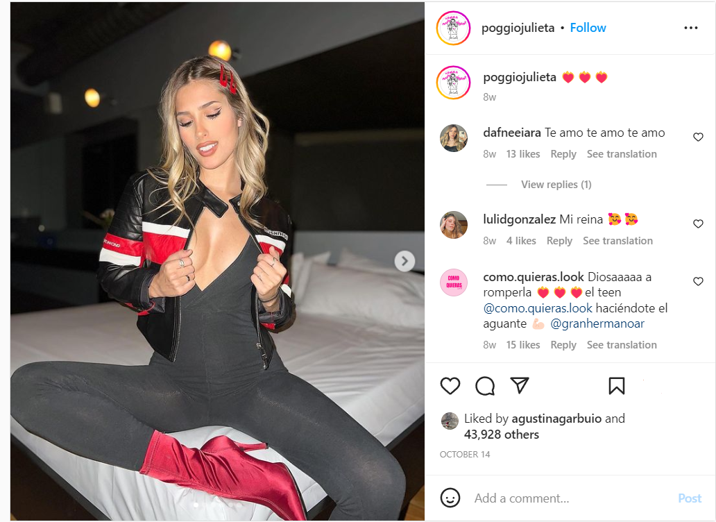 Julieta Poggio es una de las participantes más destacadas de la edición actual de Gran Hermano. Desde que ingresó en la casa más famosa del país, su cuenta de Instagram no ha parado de ganar seguidores, quienes se encuentran con una importante cantidad de publicaciones subidas de tono.