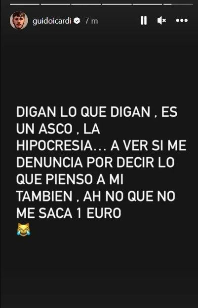"Digan lo que digan. La hipocresía... a ver si me denuncia por decir lo que pienso a mí también, ah no que no me saca 1 euro", expresó, en clara referencia al dinero que Wanda ha exigido para separarse de Icardi.