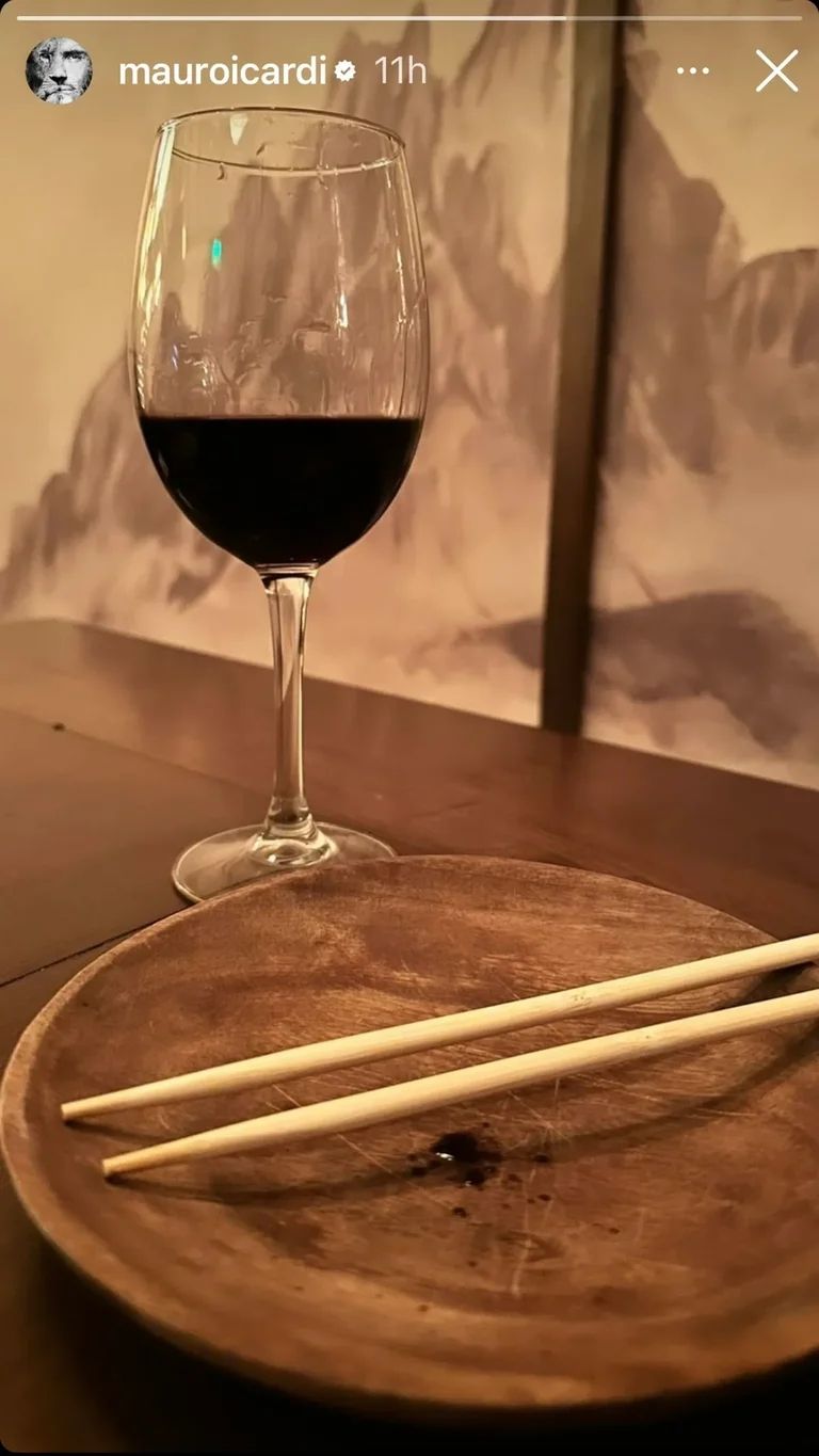 Además, en sus historias de Instagram hizo un particular movimiento al publicar en sus hisotiras de Instagram una foto de una copa de vino tinto, junto a un plato con palitos de sushi. De inmediato, surgieron las especulaciones en relación a que la publicación en cuestión aludiría a la China Suárez. Es más, algunos fueron más allá en su análisis y aseguraron que los palitos en cuestión estarían relacionados con el apodo de la actriz, mientras que el vino represntaría la palabra "sangre" del nombre de usuario de la artista en Instagram: sangrejaponesa.