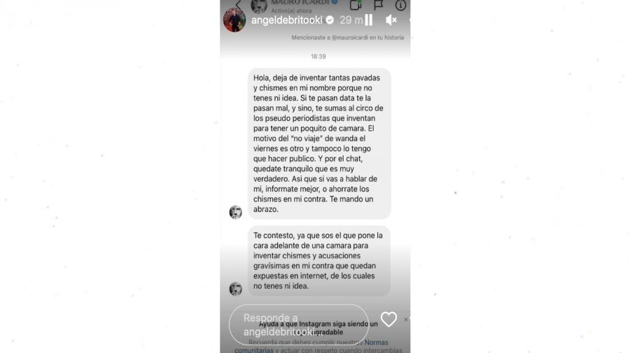 Finalmente, Mauro Icardi remató: "Te contesto ya que sos el que pone la cara adelante de una cámara para inventar chismes y acusaciones gravísimas en mi contra que quedan expuestas en Internet, de los cuales no tenés ni idea".