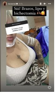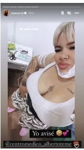 Todo comenzó con la pregunta de una seguidora, que acudió a esa plataforma digital para consultarle: “¿Te hiciste cirugía estética More?”. De esa manera, la hija del creador de Intrusos se sacó una selfie, que graficaba un aposito en la pera y contó: “Sí, brazos, lipo y Bichectomia”.