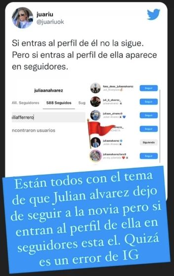 Desde ese punto, de manera increíble se armó una campaña en las plataformas digitales, porque muchos usuarios creyeron que Emilia exhibía comportamientos de posesiva sobre Álvarez y por eso armaron un hashtag y cientos de mensajes para empujar al delantero a separarse.