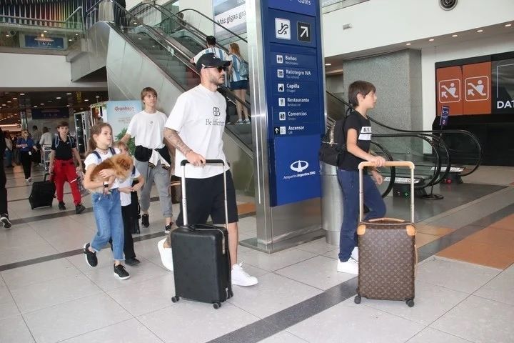 Mauro no vino solo, sino que lo hizo acompañado por sus pequeñas Francesca e Isabella, que vino con uno de sus perros; y además trajo al país a Valentino, Benedicto y Constantino, los niños que la mediática tuvo con Maxi López. Toda la familia está en Argentina.