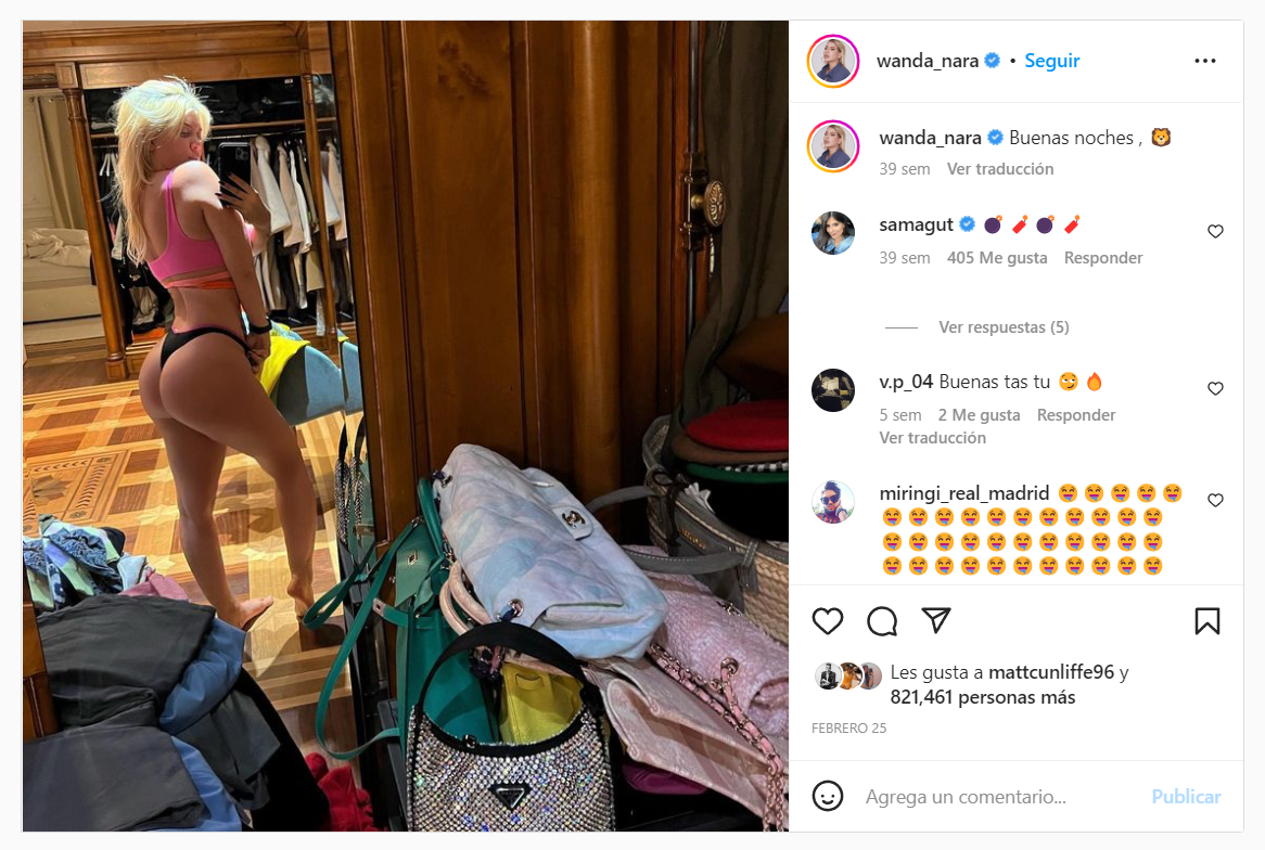 Es cierto que no es una de las peores fotos, en el sentido de que el trabajo de edición está realizado de forma correcta y con prolijidad. Sin embargo, resulta evidente que no se trata del cuerpo real de Wanda Nara, y así lo notaron varios de los usuarios. “¿Sos vos? Un éxito el Photoshop”, escribió uno. Otro, respondiendo al “dulce o truco” que había escrito Wanda (la publicación es del 31 de octubre), dijo “truco tiene esa foto”.