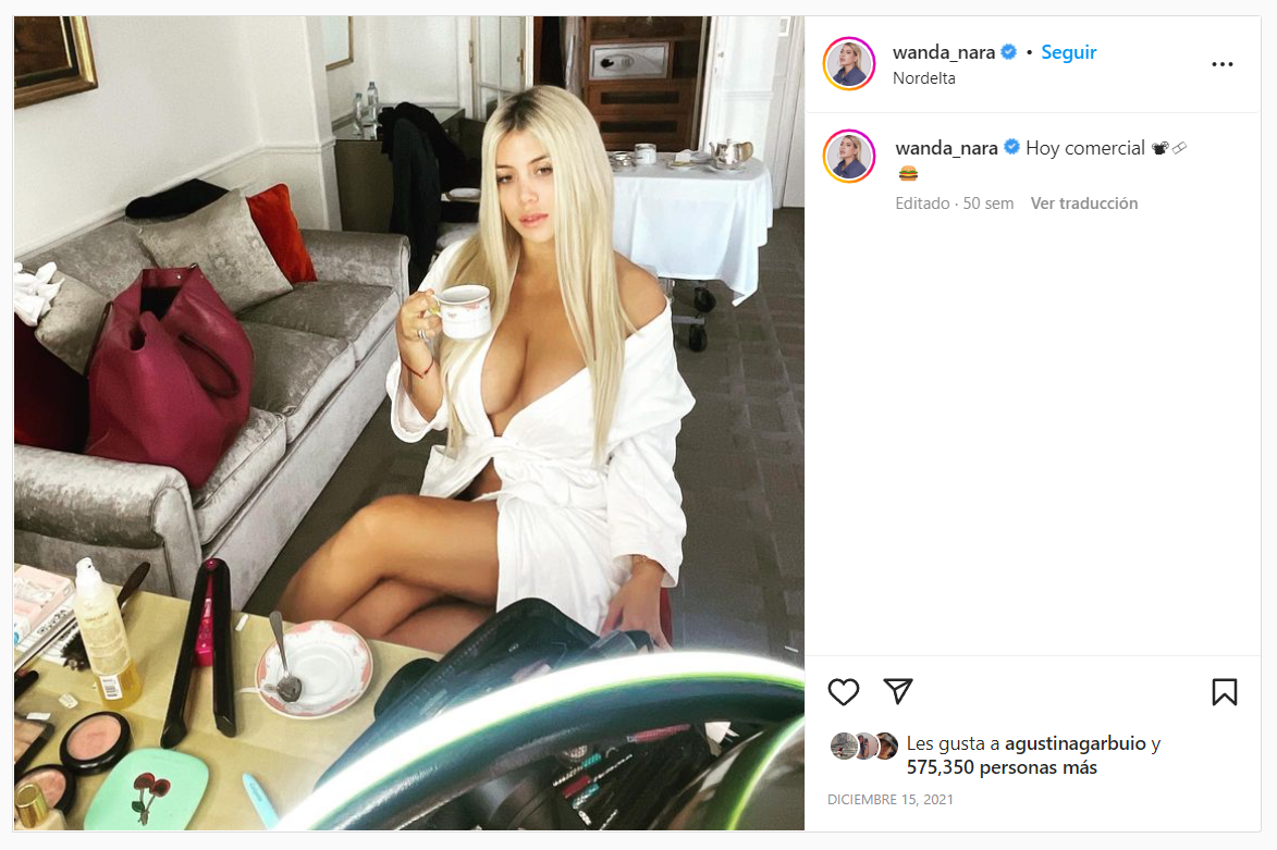 Esto se debe a que no termina de quedar claro si se trata de una edición desprolija o bien de un efecto visual. Lo cierto es que Wanda está sentada con las piernas cruzadas… Al menos con dos de las tres piernas que parece tener en la foto.