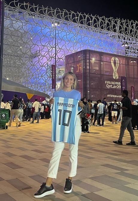 La rubia consiguió sus tickets para ver el segundo encuentro del Grupo C y, desde ahí, no se perdió partido, llevando su aguante y su estilo a los estadios de Lusail y Áhmad bin Ali de Doha, donde Argentina le ganó primero a México, luego a Australia, y firmó su pase a cuartos de final.