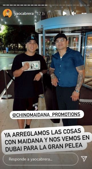 "Vine directo al Hilton para firmar contrato con el Chino, por si se paraba de mano lo iba a knockear, pero todo bien, me dice ‘estás hecho poronga’, sí estoy todo podrido pero vamos a pelear, mañana hay firma de contrato para que vean que la pelea se va a hacer y que con el Chino ya arreglamos todas las cosas. Así que Chino, nos vemos en Dubai", finalizó.