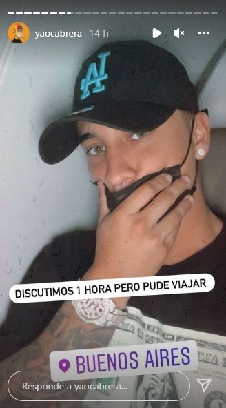 Ya sobre suelo porteño, sumó una nueva publicación: "Discutimos una hora pero pude viajar. Terminó todo bien con las chicas del fondo. Nos dejaron viajar, todo legal, diez puntos. Buena onda nos arreglamos, pero es su rol, lo que tenían que hacer, si estaba lisiado, no podía viajar en teoría, así que tuve que presentar un permiso todo y nos hicimos amigos", detalló.