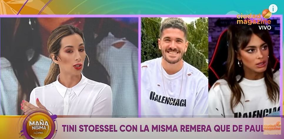 Por último, la panelista volvió sobre el detalle que no pasó desapercibido: la remera con agujeros de Balenciaga con la que apareció Rodrigo tomando mate en una foto, la misma que usó Tini a mediados de año, cuando hizo un vivo en España con Ibai, justo en la época en la que arrancó el rumor.
