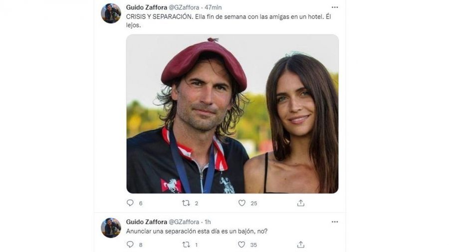 En pleno Día de los Enamorados, Guido Zaffora había deslizado en Es por ahí (América): "Anunciar una separación esta día es un bajón, ¿no?".