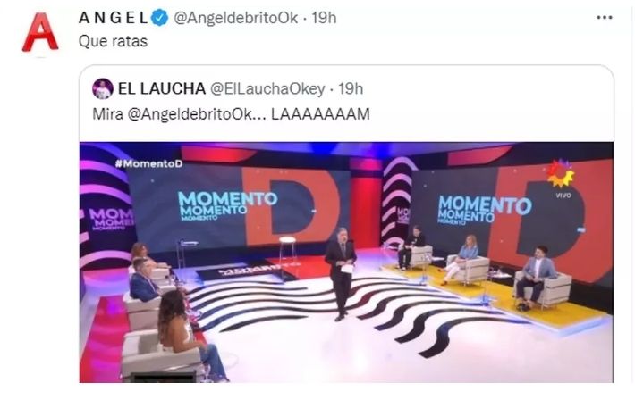 Pero Latorre no fue la única indignada con la situación. Ángel de Brito también apuntó contra el ciclo de Doman. En esta oportunidad señaló la copia casi exacta de la escenografía de LAM pero con otro color. "Que ratas", escribió el periodista de chimentos en su cuenta de Twitter.