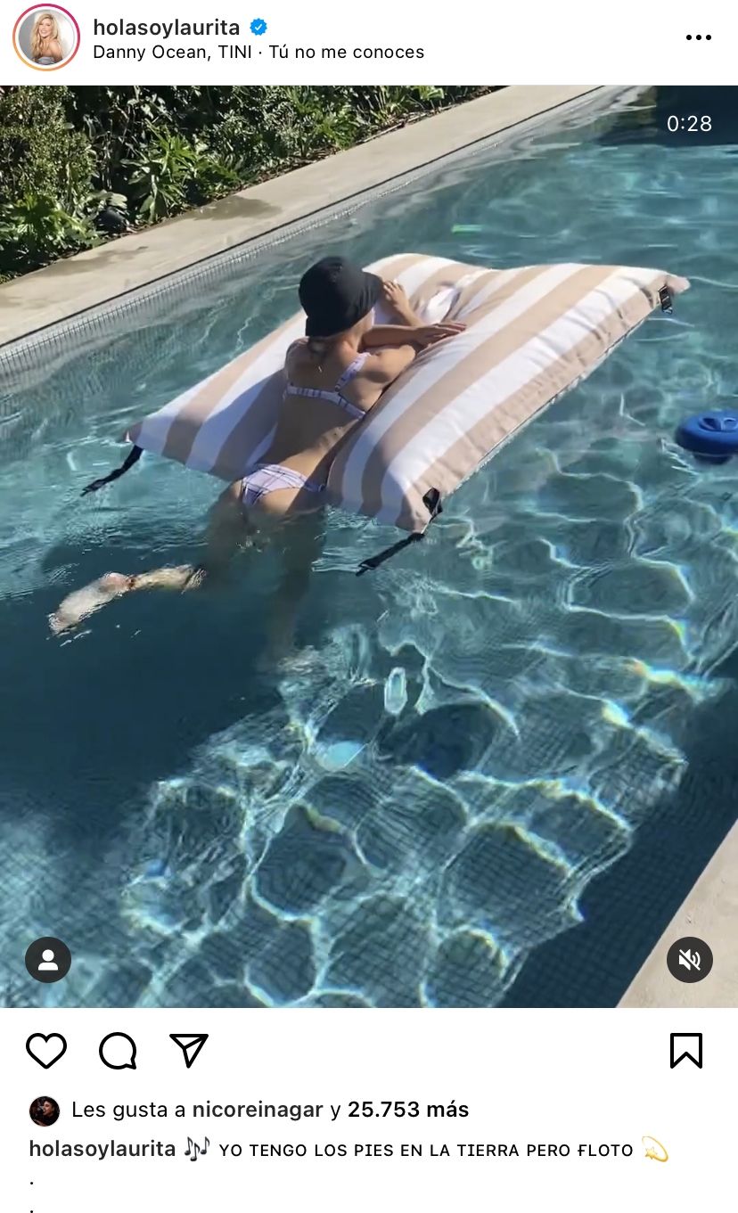 El martes Federico subió un post en su cuenta de Instagram que decía “pies sobre la tierra siempre” y se lo ve acostado tomando sol frente al agua. Al día siguiente, fue Laurita quien se sumó a la tendencia y escribió “Yo tengo los pies sobre la tierra pero floto”, con un video de ella en una pileta.