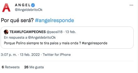 Ahí surgió el conflicto, el punto álgido. Resulta que un usuario de Twitter le preguntó a Ángel: “Se ve que Polino no te sigue porque confirmó en la radio que Lam va a América y que quieren a Escudero”. Lejos de obviar el mensaje, de Brito respondió con furia.