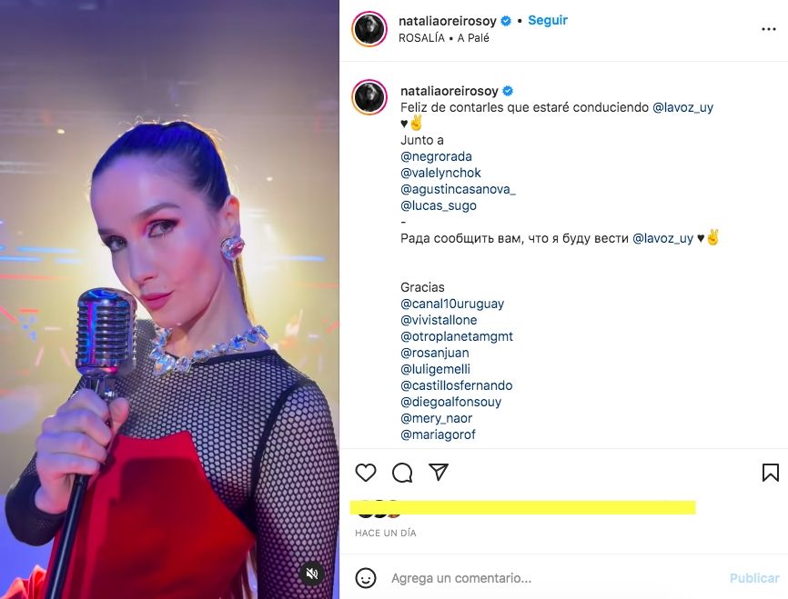 Oreiro sorprendió al confirmar que será la conductora de esta temporada 2022 de la versión uruguaya del reality musical. Desde sus redes sociales anunció: "Feliz de contarles que estaré conduciendo La Voz Uruguay, junto a Rubén Rada, Valeria Lynch, Agustina Casanova y Lucas Sugo".