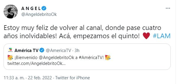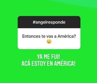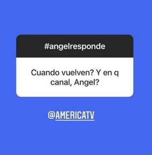 Pero, en las últimas horas, el periodista dio a conocer cuál será el canal donde arribará durante este año. Fue durante un ida y vuelta con sus seguidores en Instagram. Allí el periodista respondió preguntas de sus seguidores. "¿Cuándo vuelven? ¿Y en qué canal, Ángel?", le consultaron. "Entonces, ¿te vas a América?", se leyó en otra historia. "¡Ya me fui! ¡Acá estoy en América!", respondió el periodista.