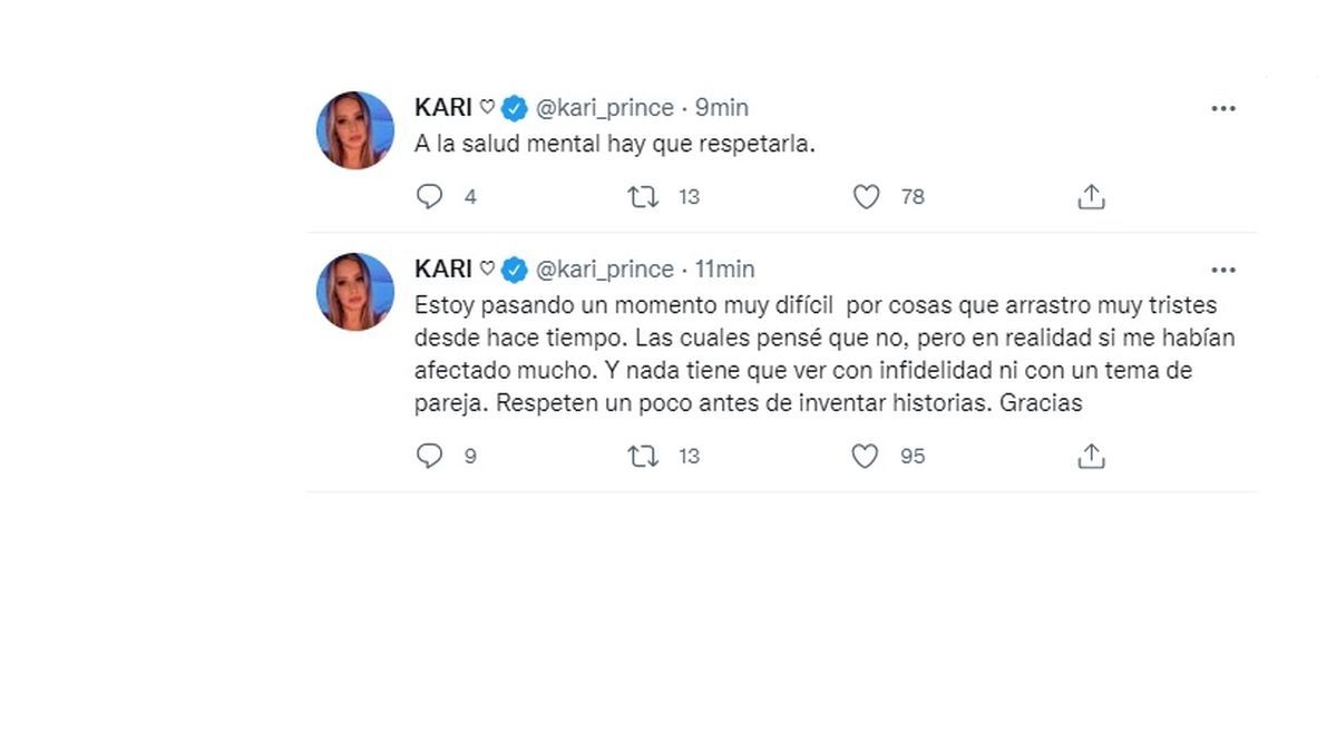 Finalmente, Karina La Princesita sentenció: “A la salud mental hay que respetarla”. Como es habitual, los seguidores de la artista le ofrecieron su apoyo incondicional.