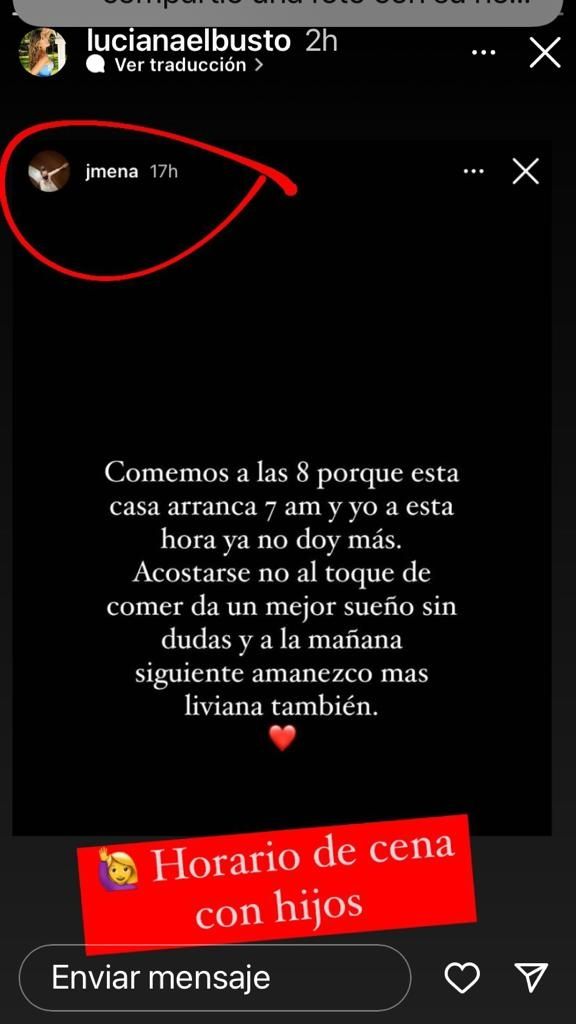 Y agregó: “Acostarse no al toque de comer da un mejor sueño sin dudas, y a la mañana siguiente amanezco más liviana también. Horario de cena con hijos”. De esta manera, dejó en claro la rutina que lleva adelante cuando se tiene un hijo casi adolescente y que tiene las energías muy arriba.