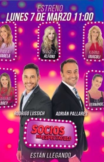Socios del Espectáculo ya tiene todo listo para desembarcar por la pantalla de El Trece. El nuevo programa de chimentos conducido por Adrián Pallares y Rodrigo Lussich anunció fecha de estreno para el próximo 7 de marzo a las 11 hs, ocupando el lugar que dejó vacante Ángel de Brito con Los Ángeles de la mañana.