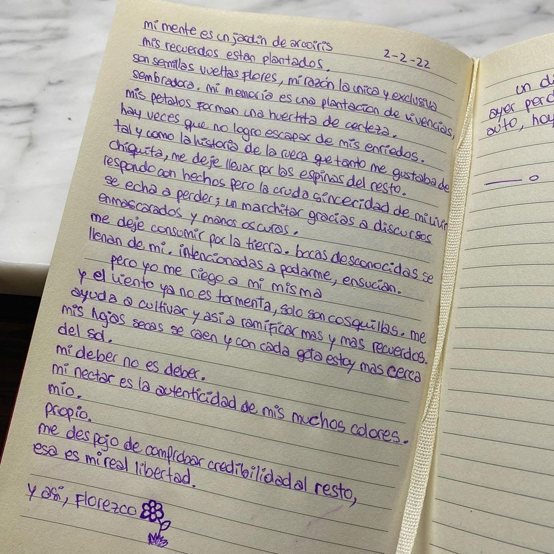 "Respondo con hechos pero la cruda sinceridad de mi vivir se echa a perder; un marchitar gracias a discursos enmascarados y manos oscuras. Me dejé consumir por la tierra. Bocas desconocidas se llenan de mí. Intencionadas a podarme, ensucian. Pero yo me riego a mí misma y el viento ya no es tormenta, solo son cosquillas", agregó. "Me despojo de comprobar credibilidad al resto, esa es mi real libertad. Y así, florezco", concluyó la joven.