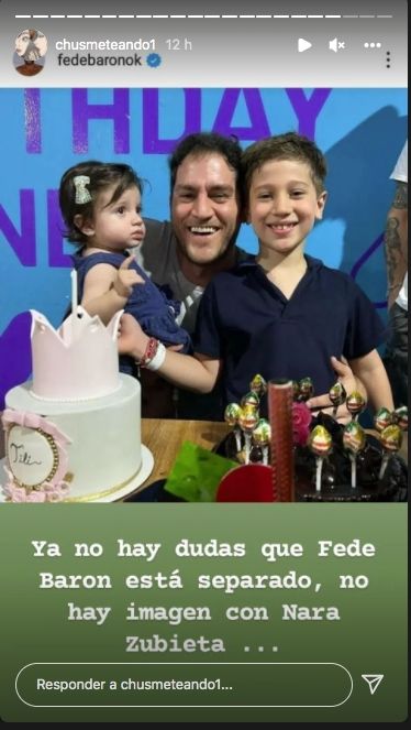 En ese mismo espacio Federico aprovechó para también soplar las velas de un añito de su pequeña Matilda. En todas las fotos se lo percibe solo, sin la presencia de Zubieta. Esto lo detectó la cuenta de Instagram Chusmeteando, que escribió. “No hay dudas que Federico se separó, no hay ni una foto con Nari”.