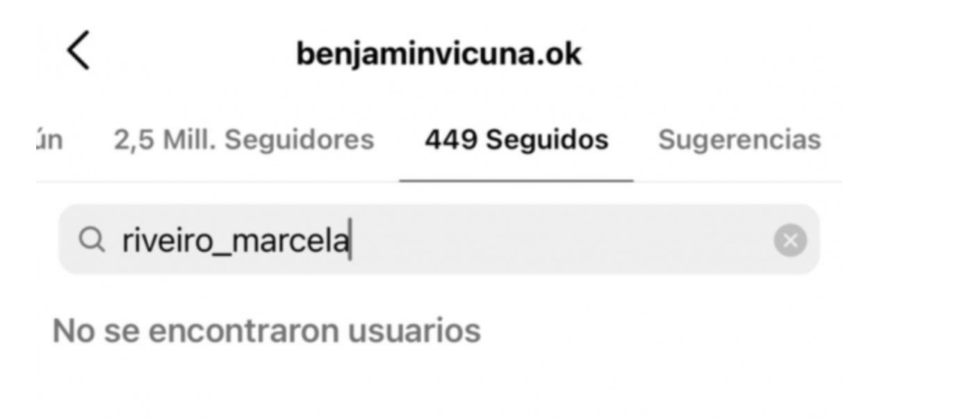 Berardi describió toda la situación y contó su descubrimiento: "Último momento... Benjamin Vicuña dejó de seguir en Instagram a la madre de la China". Todo un comportamiento que evidencia el tipo de actualidad que late entre el actor y Suárez.
