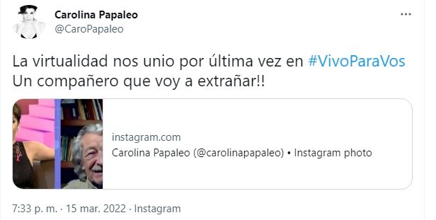 "La virtualidad nos unió por última vez. ¡Un compañero que voy a extrañar!", expresó Carolina Papaleo.
