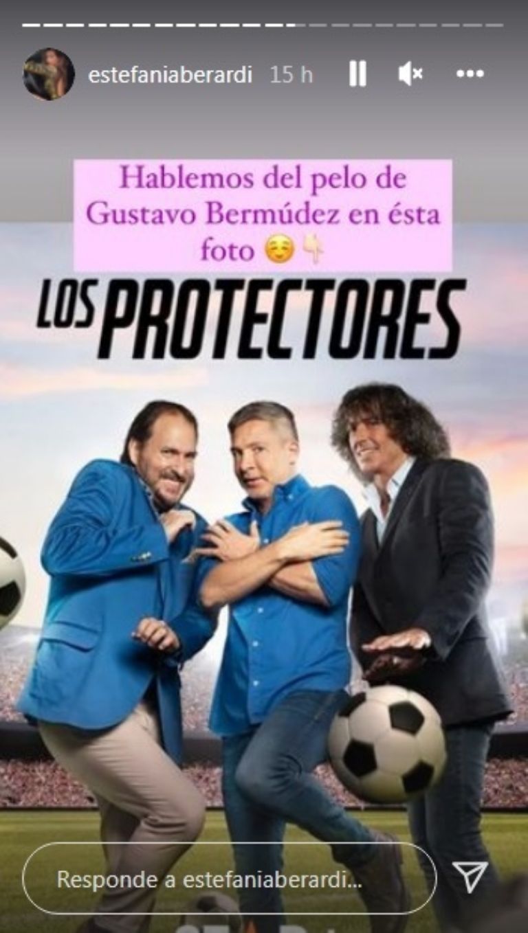 Una de las personas que no quiso quedarse afuera de la interacción que generó el llamativo nuevo look fue la panelista Estefanía Berardi, quien le propuso a sus seguidores de Instagram debatir al respecto. “Hablemos del pelo de Gustavo Bermúdez en esta foto”, dijo en sus historias de Instagram.