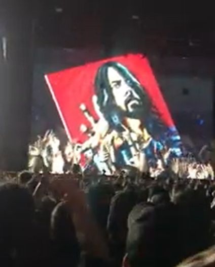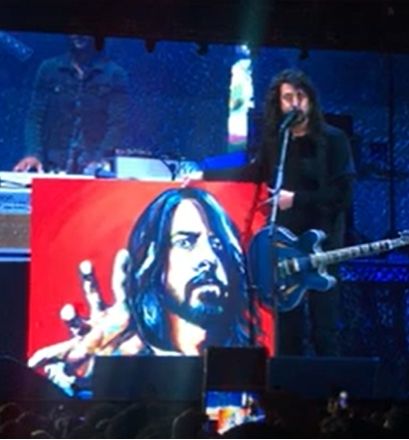 Mientras la banda transitaba el tramo final de su presentación, desde el público emergió un cuadro pintado al óleo con el rostro de Grohl. Pasando de mano en mano, la obra terminó llegando al escenario y fue recibido por el músico que no terminaba de caer de su asombro.