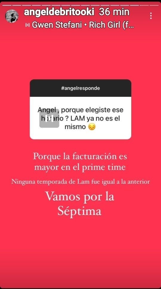 Pero eso no fue todo. Otro usuario le escribió “Ángel, ¿por qué elegiste ese horario? LAM ya no es el mismo. Ante tal reclamo, el periodista fue muy honesto: “Porque la facturación es mayor en el prime time. Ninguna temporada de LAM fue igual a la anterior. Vamos por la séptima”.