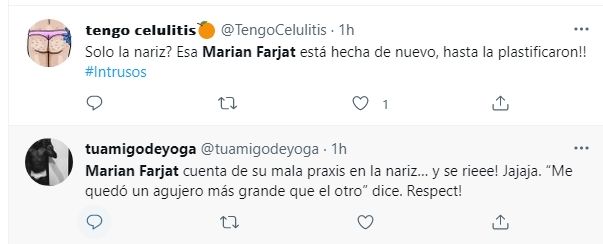 Marian Farjat estuvo invitada a Intrusos y contó la dramática situación que todavía atraviesa por una mala praxis en una cirugía estética que se realizó en 2017. La ex Gran Hermano contó con lujo de detalles lo que vivió después de someterse a una cirugía en la nariz.