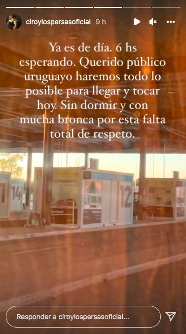 Ciro y Los Persas se estarán presentando esta noche en la localidad uruguaya de Minas, a 120 kilómetros de Montevideo. Sin embargo, antes de cruzar la frontera, el micro que trasladaba a los músicos estuvo varado durante más de seis horas. En este contexto Andrés Ciro Martínez, cantante y líder de la banda, expresó su indignación en sus redes sociales.