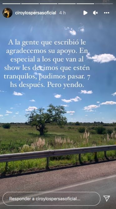 Finalmente, tras poder lograr realizar todos los papeles pertinentes y cruzar la frontera, el músico agradeció a todos sus seguidores que se preocuparon por la situación vivida por la banda. "A la gente que escribió le agradecemos su apoyo. En especial a los que van al show les decimos que estén tranquilos. Pudimos pasar 7 hs después. Pero yendo".