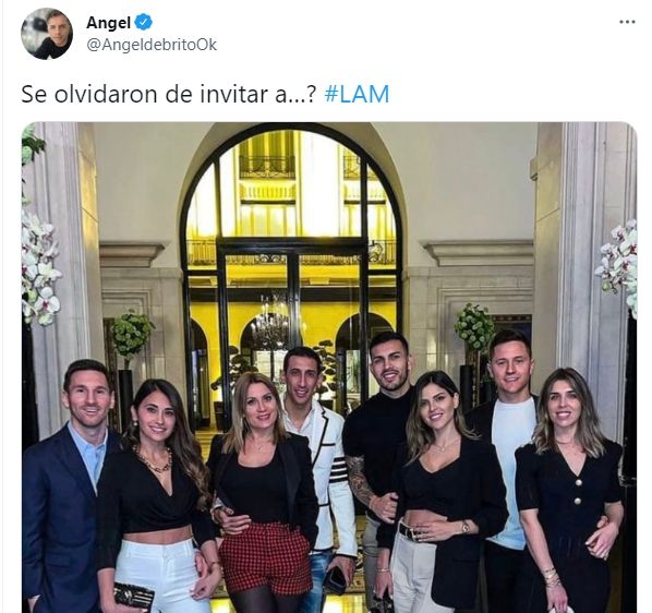 En la publicación llama la atención la ausencia de Wanda e Icardi. Al parecer, no fueron invitados al encuentro. Fue Ángel de Brito quien compartió la imagen en su cuenta de Twitter con un filoso mensaje. "¿Se olvidaron de invitar a…?", comentó el conductor de LAM.