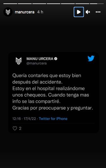 Por su parte, Urcera también llevó tranquilidad en sus redes sociales. "Queria contarles que estoy bien. Estoy en el hospital realizándome unos chequeos. Cuando tenga más info se las compartiré. Gracias por preocuparse y preguntar", escribió.