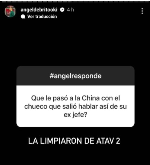 En ese contexto, Ángel de Brito reveló uno de los argumentos por el cual la China optó por exponer su bronca contra Suar. A través de una storie en su Instagram, el conductor de LAM recibió la consulta de un usuario: “¿Qué le pasó a la China con el Chueco que salió a hablar así de su ex jefe?”.